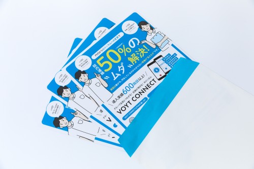 医療現場等で使用されるインカムの紹介用DMです。 イラストを使いわかりやすく親しみやすいデザインですね。